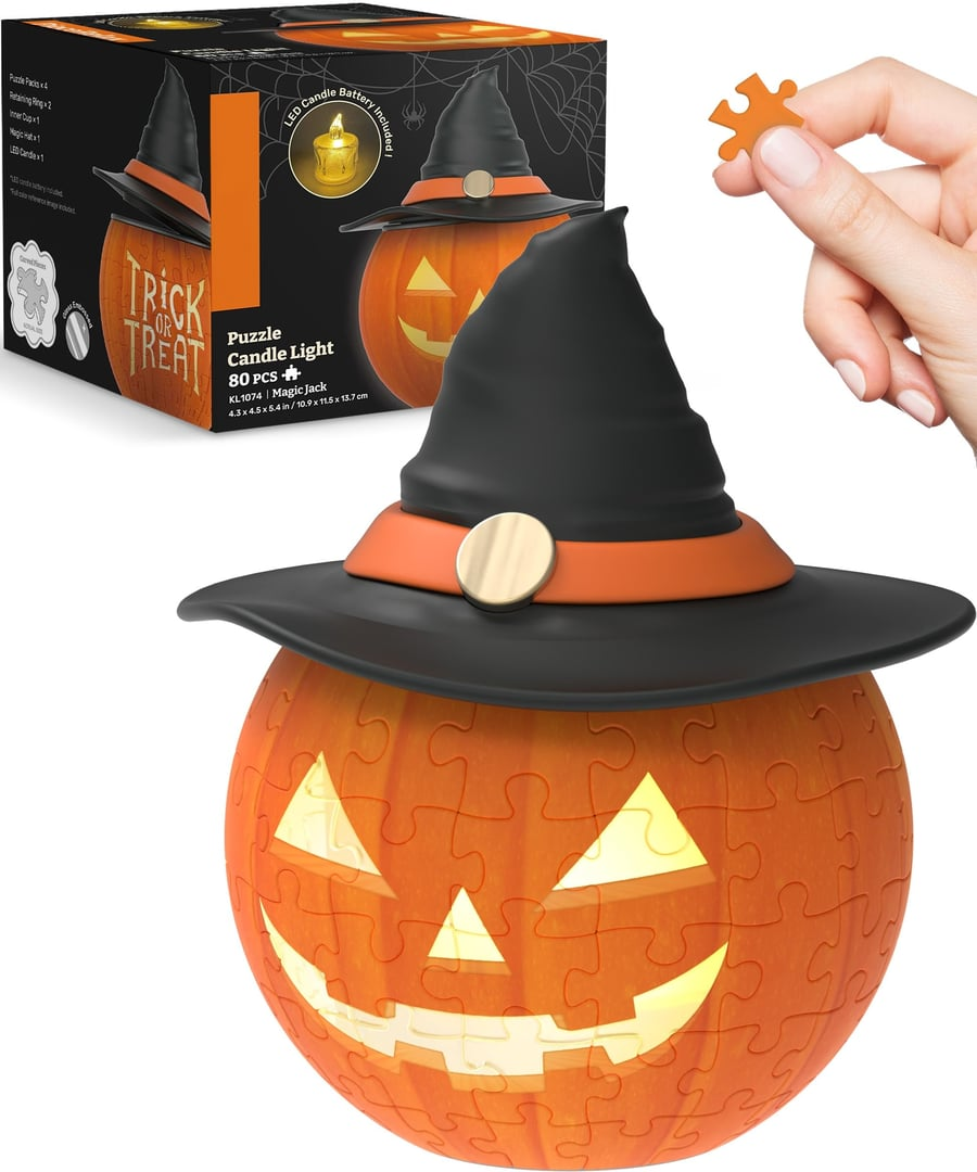 Make Your Halloween Unforgettable: Transform your home with our Halloween Puzzle Candle Light! This must-have decoration combines spooky flickering LED lights with intricate puzzle pieces. Perfect for indoor and outdoor decor, impress your guests with large, battery-powered jack-o-lantern lights and make your Halloween unforgettable.